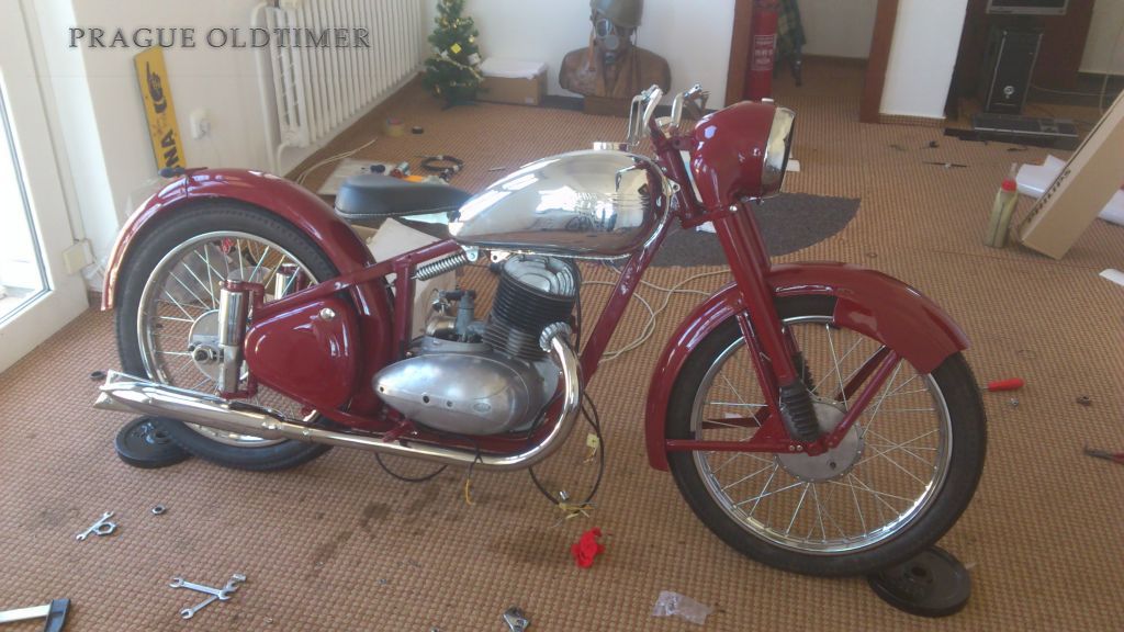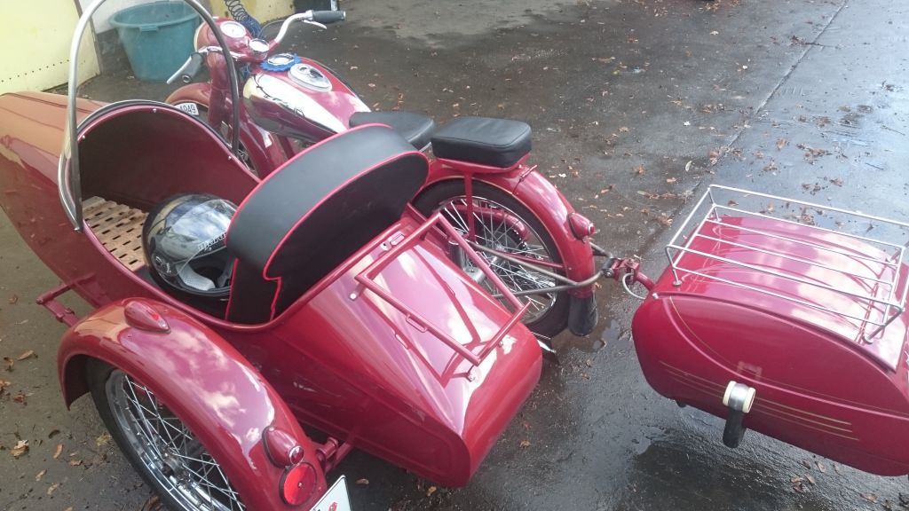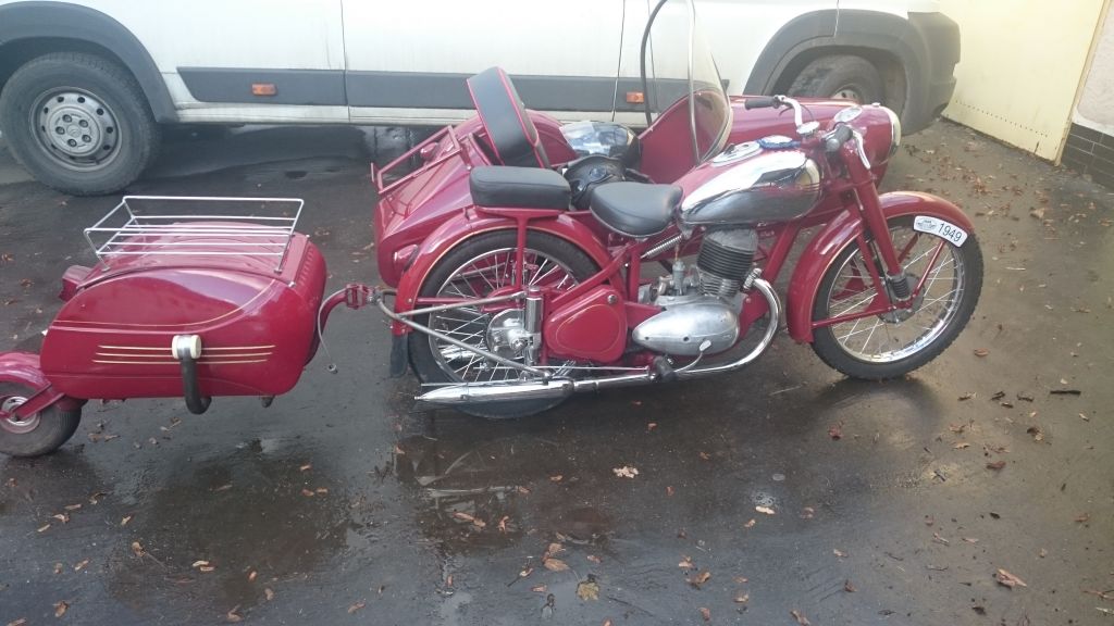 Letos (2015) připojen levostranný sidecar Tůma čímž vznikla souprava, která mohla vzhledem k poválečné nouzi klidně existovat?
